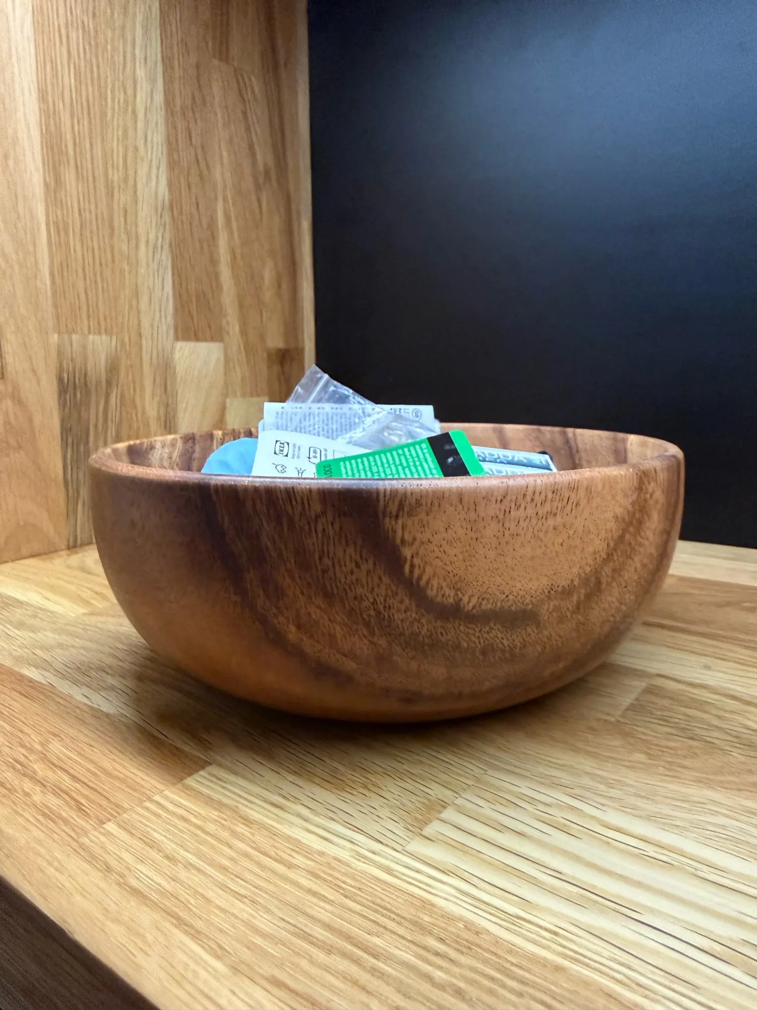 Fabrication en bois massif poli à la main garantit une surface lisse et agréable au toucher. Robustesse du matériau prévient fissures et chocs, tout en restant facile à nettoyer après chaque utilisation. Plusieurs formats permettent de choisir la dimension la plus adaptée, qu’il s’agisse de mélanger des préparations, conserver des aliments ou apporter une touche décorative à la table.